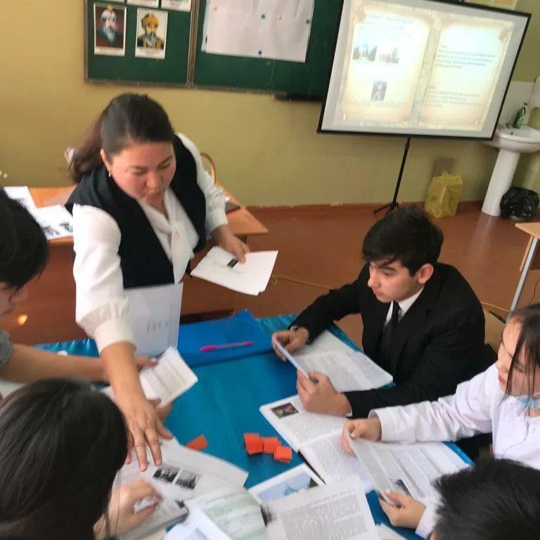"Адам және қоғам" білім саласы пәндерінің онкүндігі барысында Е.Тұралықызының 11 "А" сынып оқушыларымен "Қазақ хандығы дәуіріндегі қоғамдық саяси ойдың даму" тақырыбындағы сабағы. » А.Байжанов атындағы орта мектеп