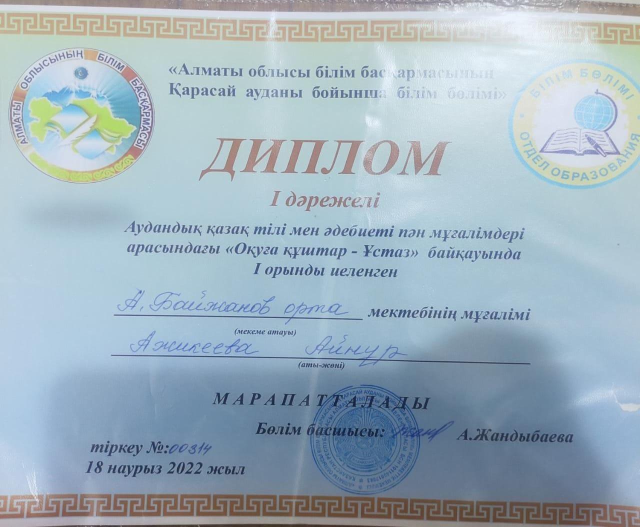 Аудандық байқау » А.Байжанов атындағы орта мектеп
