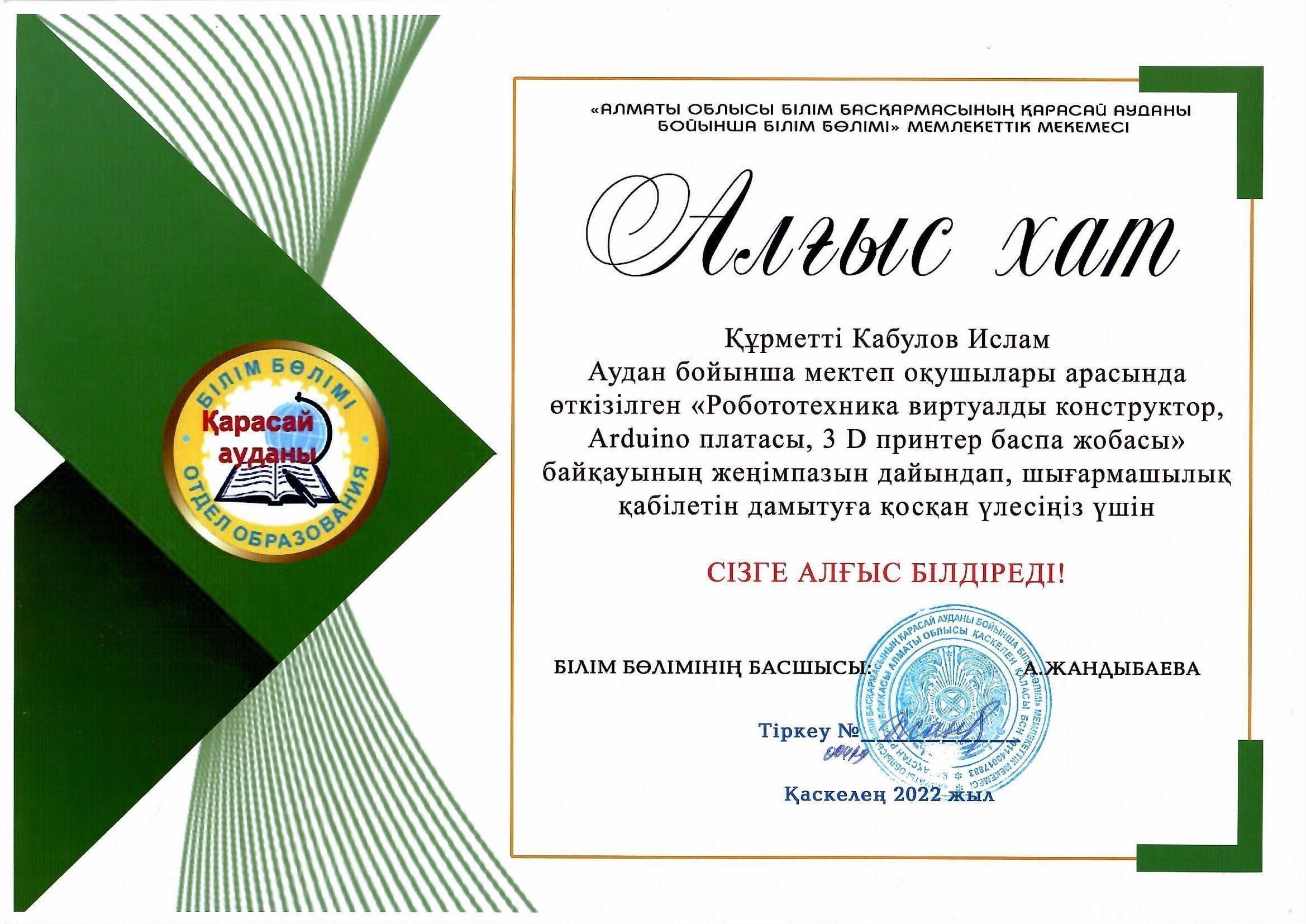 Алғыс хат аудандық білім бөлімі » А.Байжанов атындағы орта мектеп