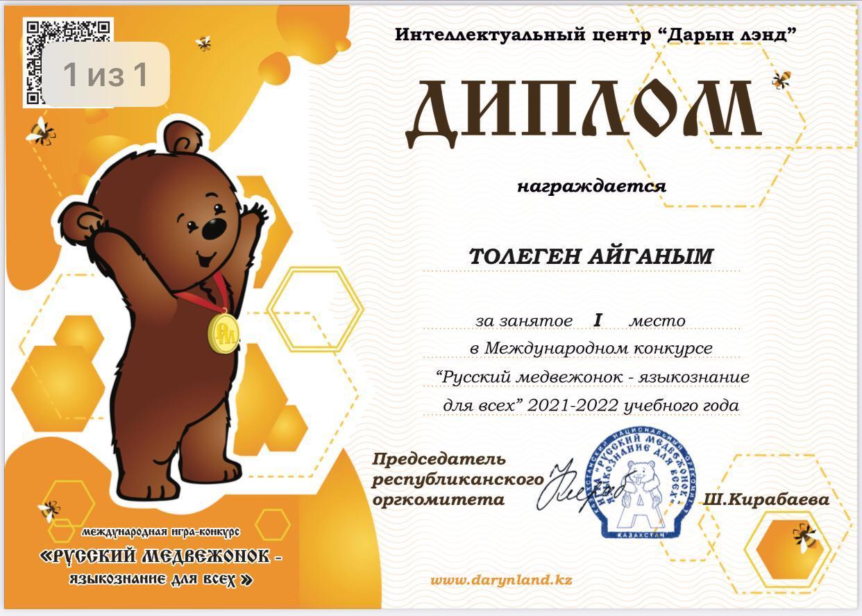 "Русский медвежонок" конкурсы » А.Байжанов атындағы орта мектеп