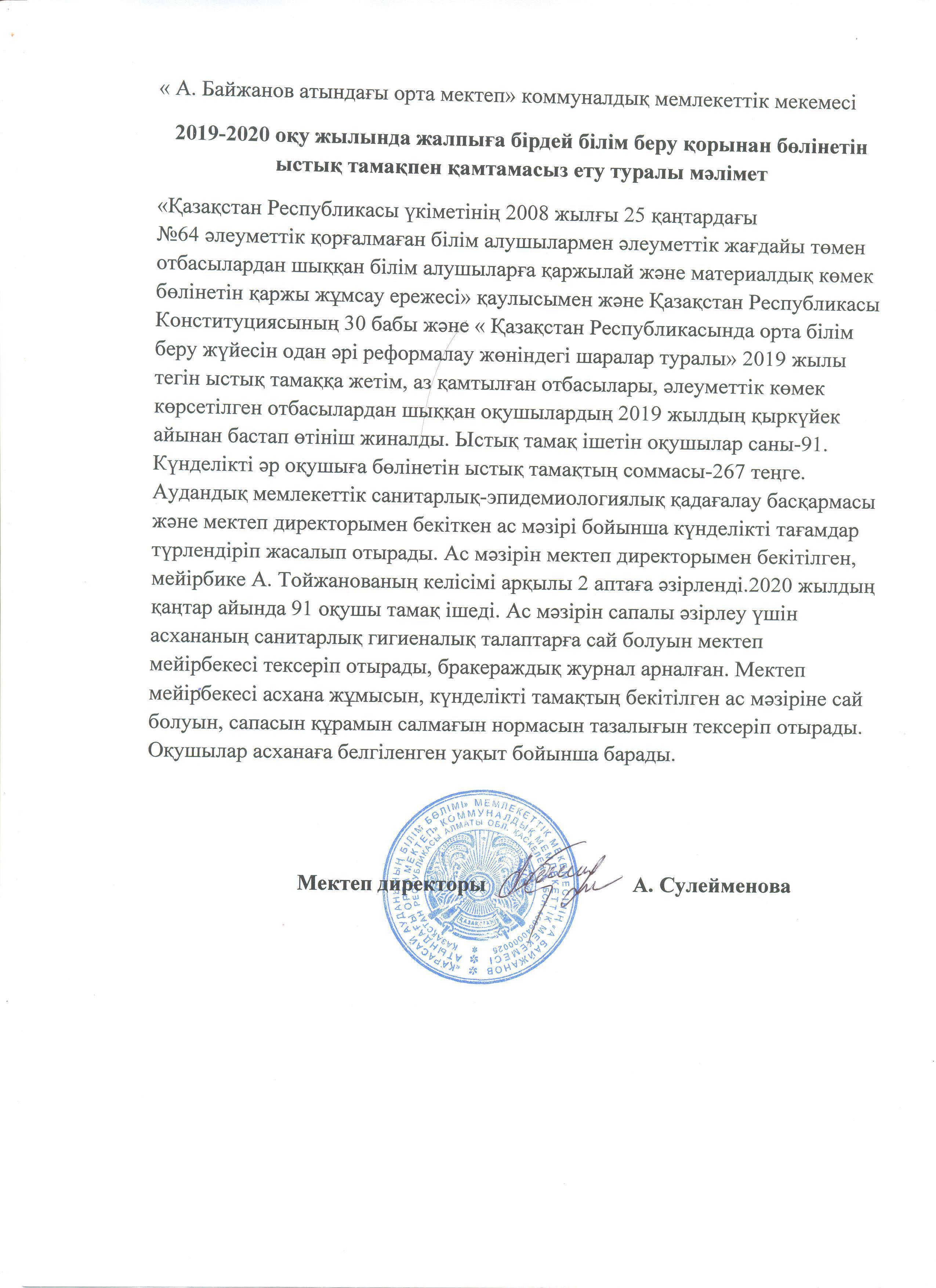 24 февраль 2020 0 1 2 3 4 5 2019-2020 оқу жылында жалпыға бірдей білім беру қорынан бөлінетін ыстық тамақпен қамтамасыз ету туралы мәлімет