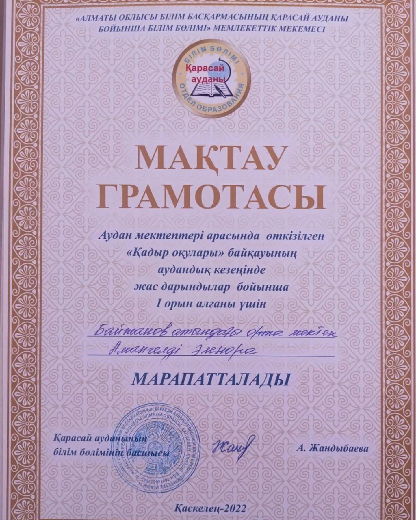 11 март 2022 0 1 2 3 4 5 Бүгінгі күннің жетістігі Бүгінгі күннің жетістігіТек алға жас таланаттар. Бүгінгі кун, ертеңгі тарихБір жүлде емес, бақандай 3 жүлде. Құттықтаулар жазып кетіңіздер