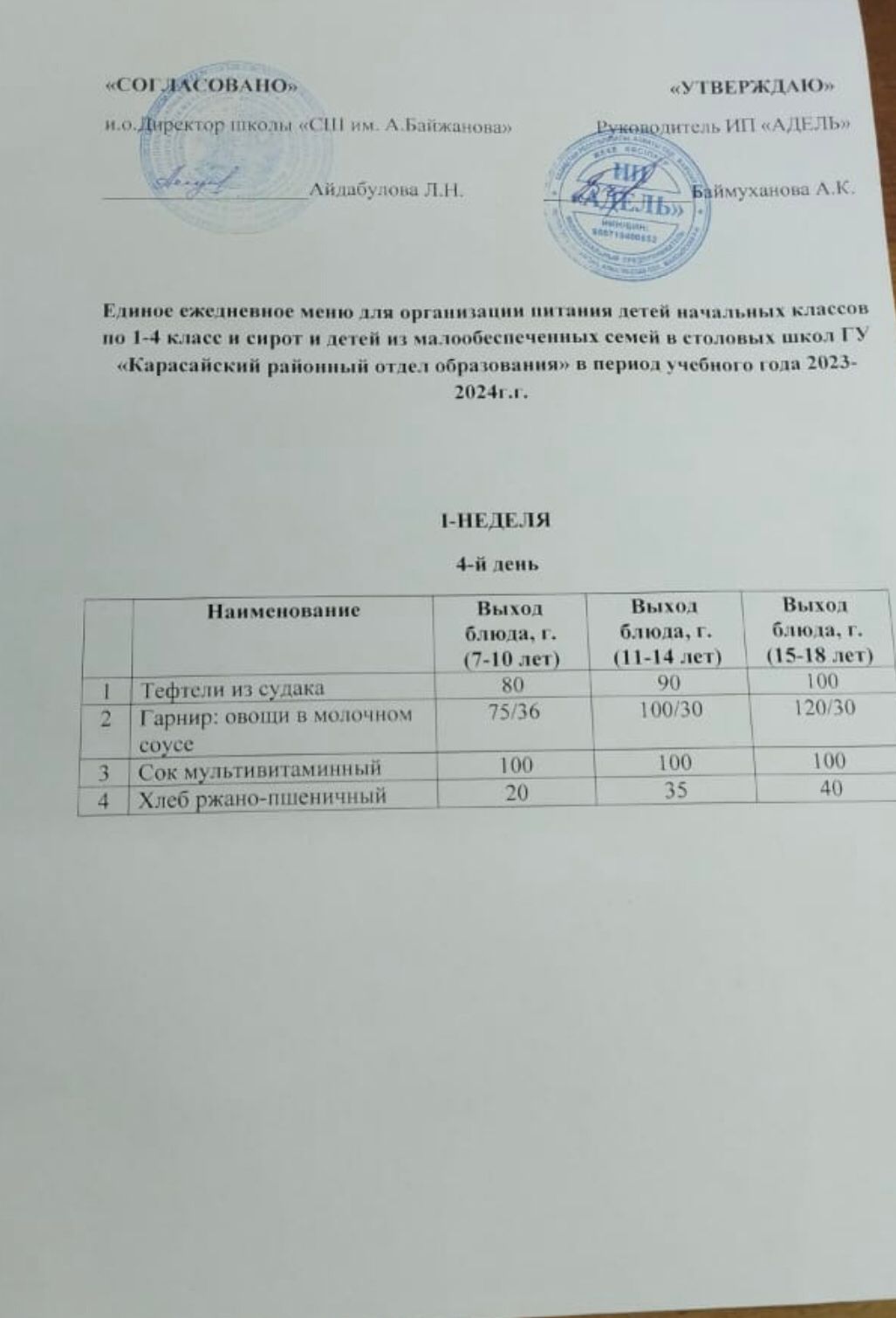 Асханада кезекшілік кестесін құру туралы » А.Байжанов атындағы орта мектеп
